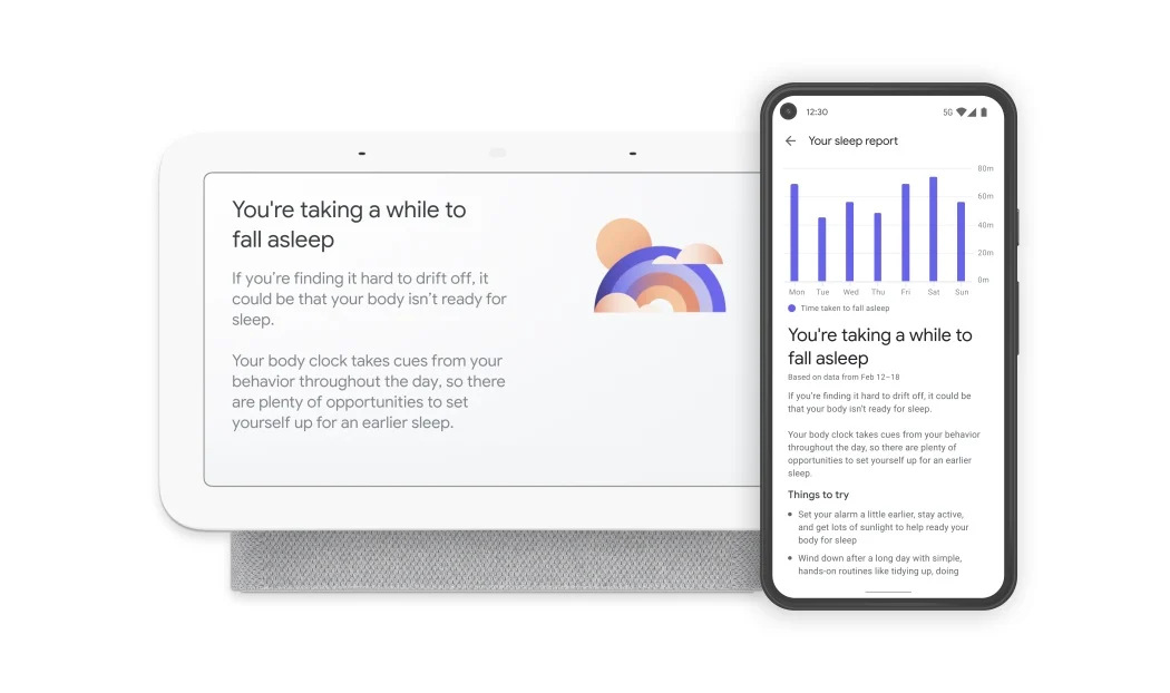 The Nest device tracks sleep patterns using radar technology, removing the need for wearable tech, then generates personalized recommendations and insights.